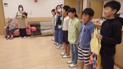 5年2組は、「保見の里」6月に引き続き2回目の訪問し、高齢者の方々と交流をしました。リコーダーの演奏をしたり、子どもたちが考えたすごろくをして楽しみました。1回目の交流から学んだことを生かして、高齢者の方のことを考えた企画がとても好評でした。