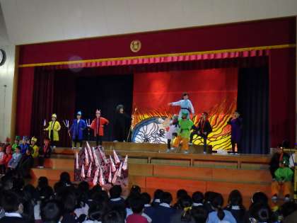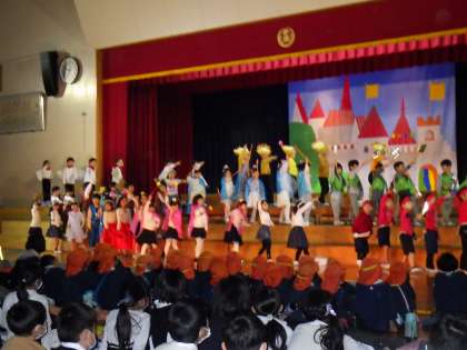 校内学芸会を行いました。本番は、他の学年の演技を観ることができませんので、子どもたち同士でお互いの演技を見合う会です。どの学年も先週の下見会のときよりもパワーアップして、すばらしい出来栄えでした。