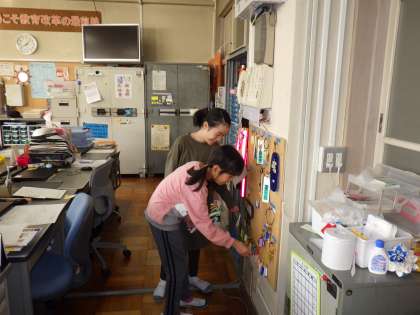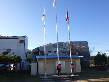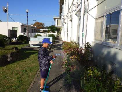 学芸会の練習期間は、ばたばたしていて普段の生活がおろそかになりがちですが、本校の子どもたちは、委員会の仕事ばっちりこなしています。5,6年生で構成される委員会活動では、写真のように旗揚げ(集会委員)、水やり(福祉美化委員)、体育倉庫の鍵の開閉(運動委員)などいろいろな活動をしています。