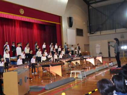 2年生は、合唱・合奏「ひびけ!パワフル サウンド」でした。低学年としては難曲の「パプリカ」に挑戦し、苦労しましたが、見事な演奏を披露できました。