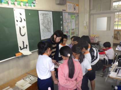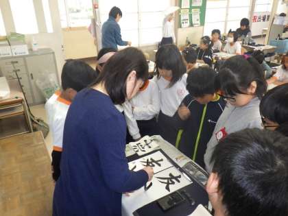 3,4年生は、書道連盟より書写ボランティアの加藤紫扇先生をお招きして、書き初め大会に向けての書写指導をしていただきました。書道の専門家から指導を受けることにより筆遣いや美しい字の書き方を学ぶことができました。