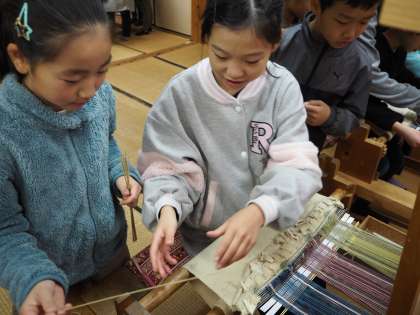 見学中は、4年生が中心となりフレンド班で活動しました。4年生も頼りがいがでてきました。午後からは、はたおり、風車、竹とんぼ、あいぞめを体験し、充実した学習となりました。