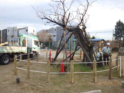トヨタ生協の学校植栽事業を活用して、拡張の必要のあったセンダンの木の囲い柵を新しくしました。1昨年の台風で半分折れ、大けがをしたセンダンの木は今後も養生が必要です。囲い柵を新しくしたことを記念して、生協の方と樹木医の豊田ガーデンさんをお呼びして2月4日(火)「せんだんの木を守ろう会」を行います。