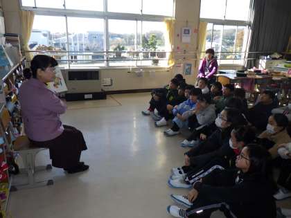 年間6回行う読み聞かせの会が、本日が最終でした。読み聞かせのサークルの皆様には、27名のみなさんでのべ60学級の読み聞かせをしていただきました。学級の全員が1つの本を集中してじっと聞く姿はすてきです。会の終わりには、学級でお礼の言葉を伝えました。