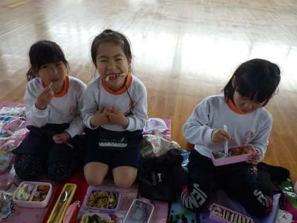 1年生は、本日東山動物園へ校外学習に行く予定でしたが、校外学習自粛の通達により残念ながら中止となってしまいました。代わりにお弁当を体育館で食べました。いつもと違う昼食の1年生の子は、大喜びでした。