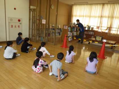 ・今年度から低学年図書室で本の貸し出しができるように整備しました。1年生は低学年図書室の使い方を学びました。