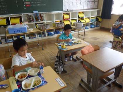 1年生 初めての給食食べたよ2