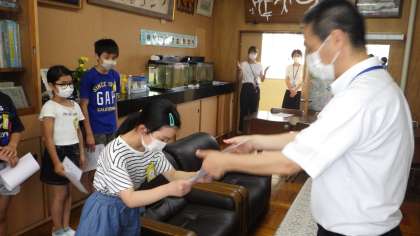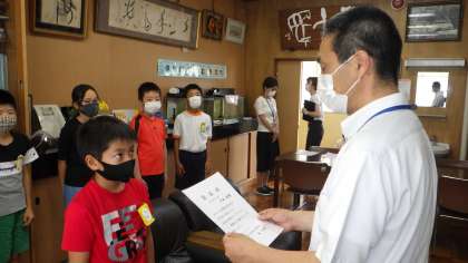 今年度、前期の学級代表・委員長・副委員長の認証を校長室で行いました。どの子もやる気に満ちたいい顔をして認証を受けました。全校への紹介は、明日、放送で行い、学校だよりでも紹介する予定です。リーダーとして、自覚をもって頑張ってほしいです。