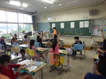 4年生の子たちは、手がまっすぐに伸びて、挙手が上手ですね。