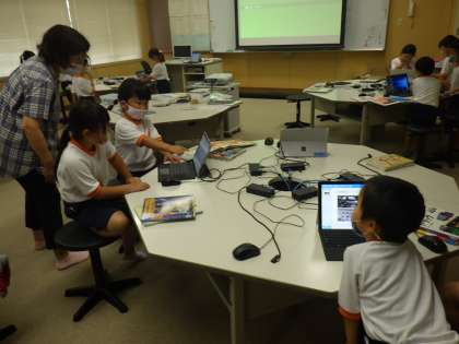 生活科の学校探検の続きで、今度はタブレットを使って色々な部屋を写真で記録していました。