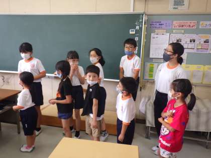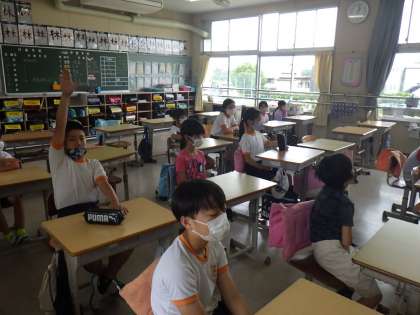 前回の通学団会は、学級ごとに行いましたので、通学団ごとで教室に集まって行うのは、はじめてです。