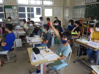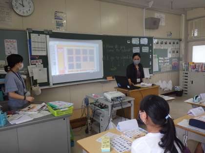 本校には、ALTが週に1度のペースで教えにきてくれています。高学年には「外国語科」、中学年は「外国語活動」、低学年には「外国語あそび」を担任とともに授業をしています。動画などでも学習しますが、やはり本物には伝える力がありますね。