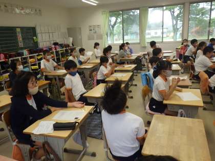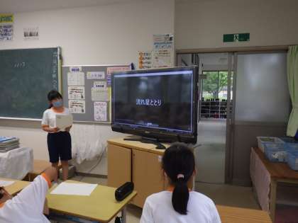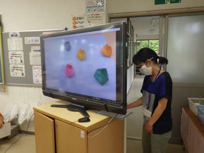 5年生では、図工で絵の中のものを少しずつ動かして、写真にコマ撮りし、アニメーションを作りました。