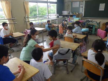 6年生は、〇×クイズやしりとりゲームなどを用意してフレンド班が仲良くなれるように計画しました。