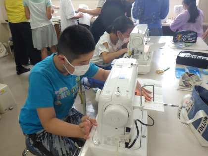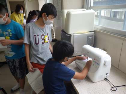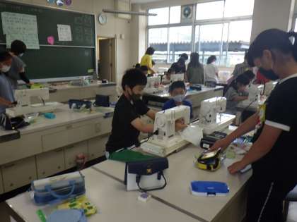 6年生の家庭科では、「マスク作り」に挑戦しています。