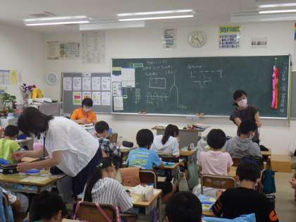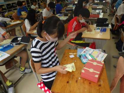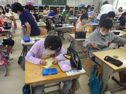 5年生の家庭科では、裁縫で「なみぬい」の練習をしています。