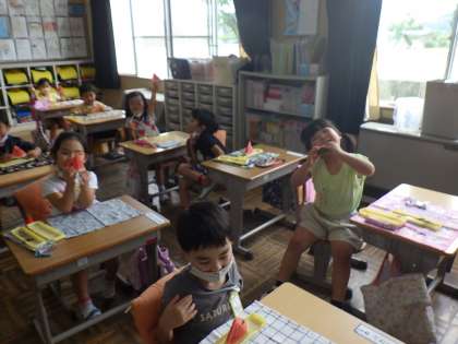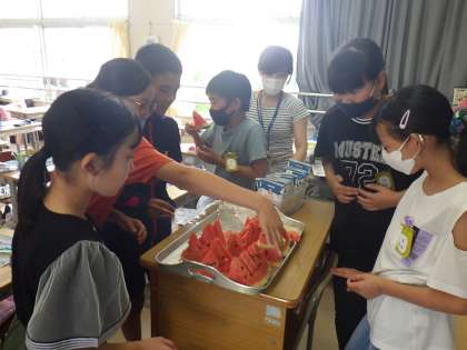 一区切りの日として、臨時休校中から野菜名人さんに育てていただいたスイカを食べる会「スイカパーティー」を行いました。