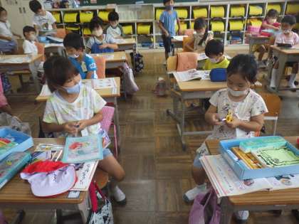 1年生の道徳では、「あとかたづけ」という題材であとかたづけについて話し合った後、実際に道具箱の整理・整とんをしました。