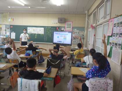 4年生の道徳では、情報モラルに関する題材で先生が学級を交代して授業をしました。