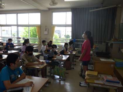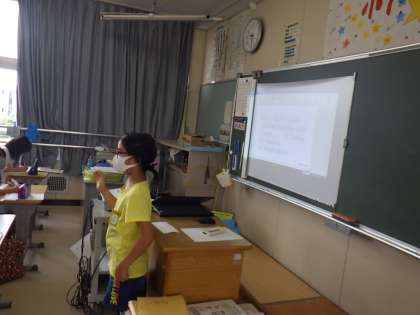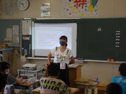 「I live in〜」「I go to〜」「 My treasure is〜」などを使って上手に発表していました。