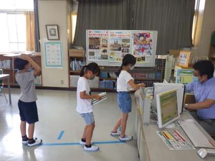 3年生は、夏休みに借りた本を返して、新しい本を借りていました。