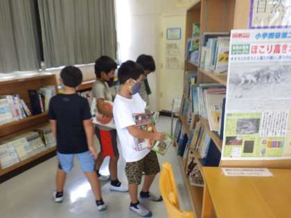 現在、図書館で本を借りる時間がない日課なので、授業の中で図書室の利用をしています。