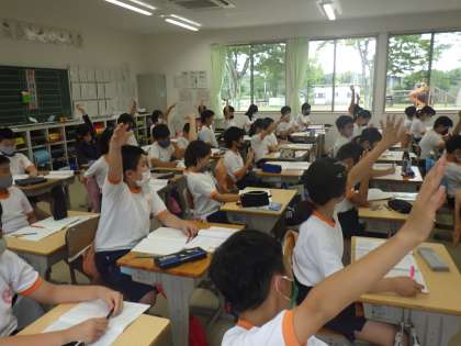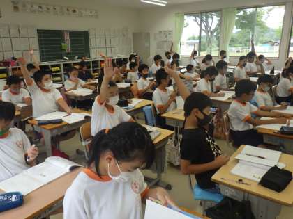 5年生の算数の授業をのぞいてみるととてもよく手があがっています。