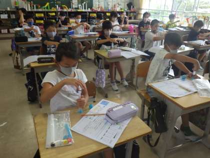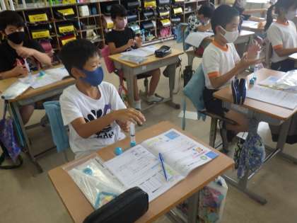 4年生の理科では、「とじこめた空気」の学習を注射器を使って学習しています。