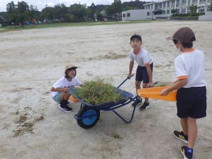 清掃の時間に各学年から草取り部隊を派遣してもらっています。