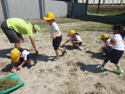 一番下の写真は、私がせんだんタイムに草を抜いていると1年生の子が寄ってきて一緒に抜いてくれた様子です。貴重な遊びの時間をありがとう!