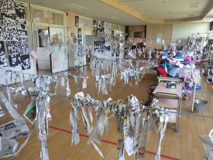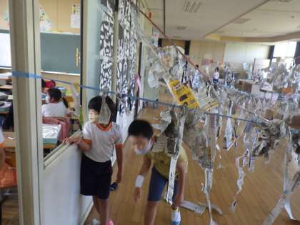 子どもたちも自分の作品が巨大になってつながっている様子をみて大喜びです。