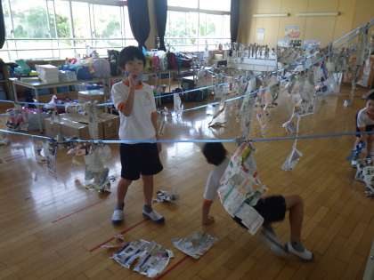 聞いてみると、図工作品「つないでつるして」という作品だそうです。