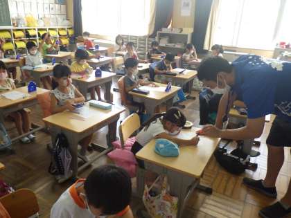 1年生にとっては、12進法と60進法が組み合わさり、長針は5の倍数で読み取らなくてはならない時計は、算数的には結構難関です。