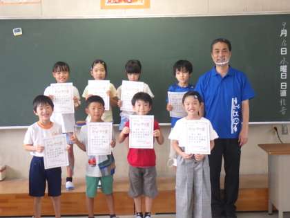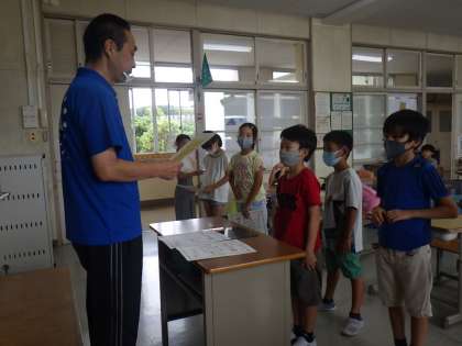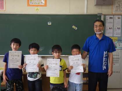 3年生の子が、清掃をしっかり行って推薦を受け、きらり輝き賞を渡しました。