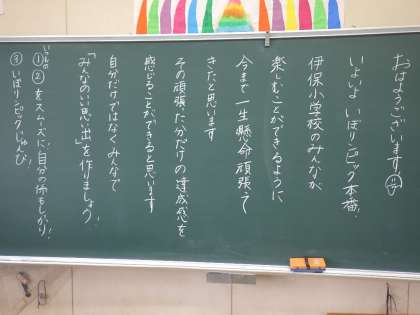 朝、6年生の黒板には担任の思いのこもったメッセージが書かれていました。