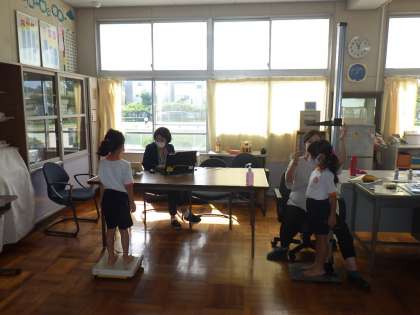 身体測定後は、各家庭に「発育状況のお知らせ」を後日配付します。成長をともに喜んでいただければと思います。