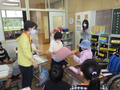 がんばって病気の治療していた友だちが、だいぶ元気になり1週間連続で登校できたので、2年生のクラスの子たちが「きらり友だちカード」や折り紙のプレゼントをしました。