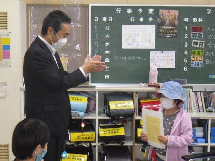 あわせて「きらり輝き賞」も渡しました。昨年、1年生のときに渡したきらり輝き賞を「ずっと部屋に飾ってたよ」と教えてくれました。