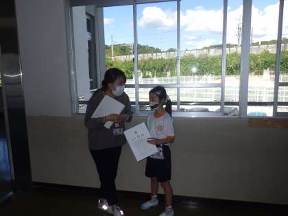 ろうかを通りかかると4年生の先生が、個別に励ましの言葉ととともに通知表を手渡しているところでした。