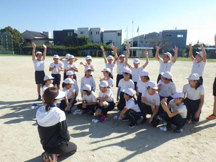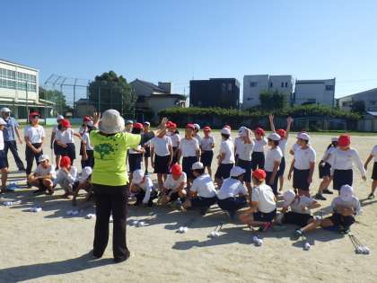 体育フェスタで演技する5・6年生のトーチワークは、修学旅行などの行事があるため早めに練習が進んでいます。