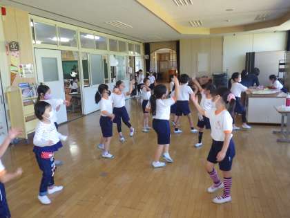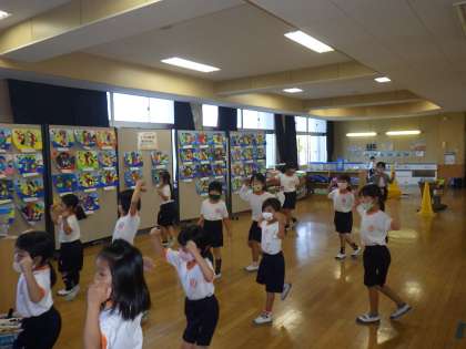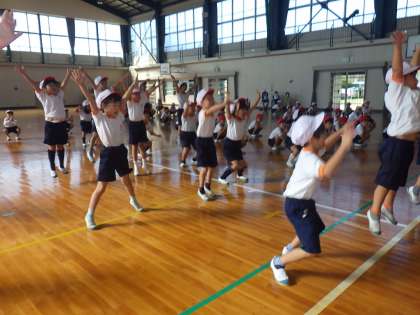 1・2年生は、1時間目に体育フェスタのダンス「フレンドライクミー」の練習をしました。