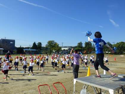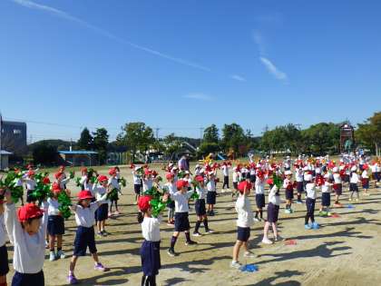 1・2年生は、運動場でダンスの練習を始めています。