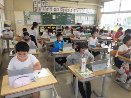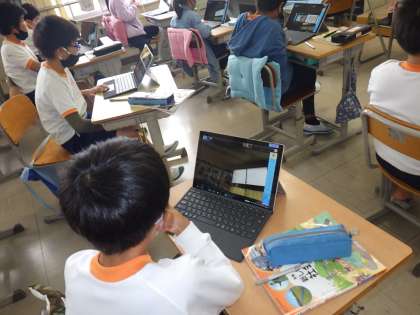 今日は、撮りためた写真をタブレットを使ってみんなで見て、共有する授業を行いました。