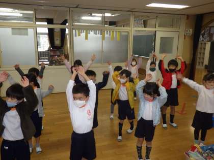 朝は、リズム体操ですっきり!(1年生)