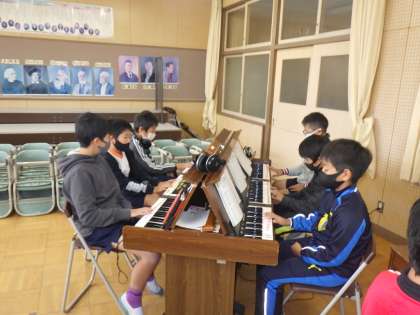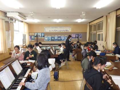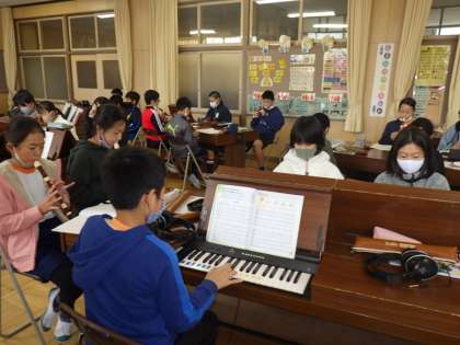 今日は、学級全体で音合わせをしていましたが、上手に音が重なり合ってすてきな曲に仕上がってきました。