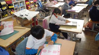 2年生の図工では、カッターナイフの使い方の学習をしました。