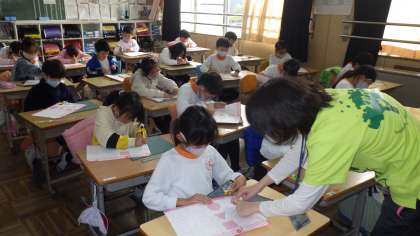 カッターナイフを使う練習をしたよ(2年生)