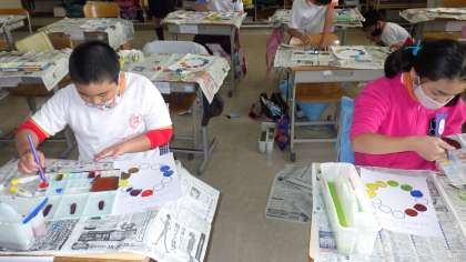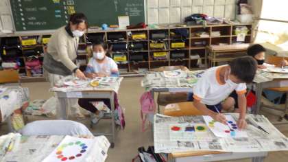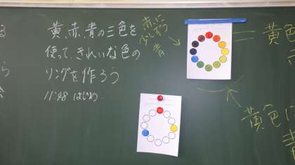 4年生の図工では、早く作品づくりが終わった子が、色相環づくりに挑戦しました。