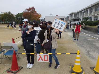 感染症対策のため、今年は保護者優先席を設置して入替えでお願いをしました。