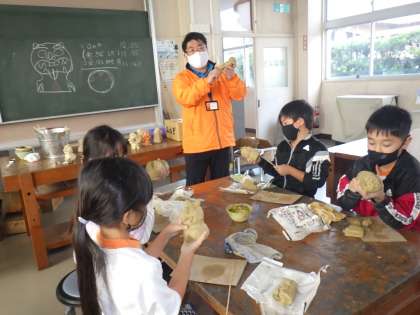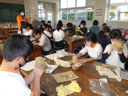 3年生の図工では、岡田屋教材さんを講師に迎えて、陶土でシーサーづくりに挑戦しました。